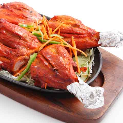 骨付きの鶏肉をスパイシーなヨーグルトソースに漬け込んで炭火焼き