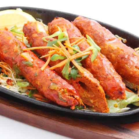 ひき肉にスパイスを練りこみ棒状にしてタンドール窯で炭火焼き
